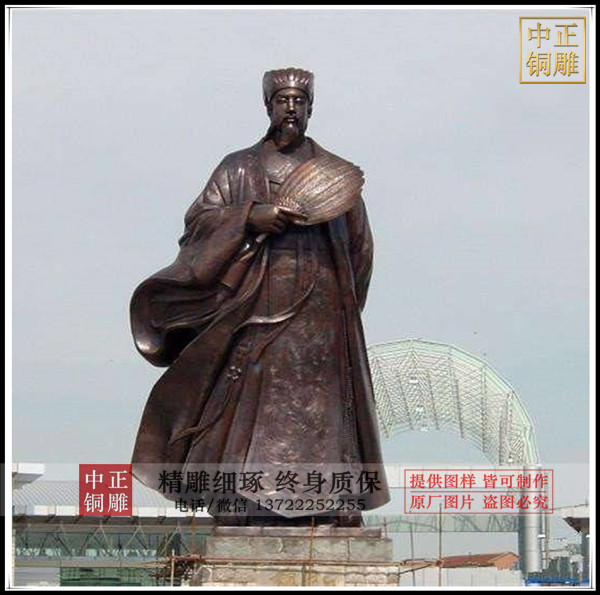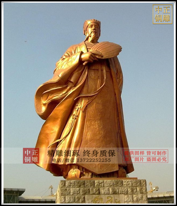 說道諸葛亮我們總是想到鞠躬盡碎死而后已,在中國人的心目中,這句話是諸葛亮的代名詞,也是后人對諸葛亮人生的高度概括與總結(jié),是諸葛亮的精神所在,是值得我們學習的優(yōu)秀品質(zhì),下面我們就欣賞一組由中正銅雕廠家制作的廣場古代人物雕塑諸葛亮。