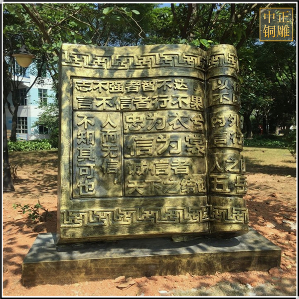 中正銅雕-校園書本銅雕塑鑄造、校園書本銅雕塑鑄造價(jià)格、校園書本銅雕塑鑄造廠家,我公司實(shí)行現(xiàn)代化企業(yè)管理,成功導(dǎo)入TPS生產(chǎn)管理系統(tǒng),形成集塑制泥塑模型、泥稿后翻制模具、翻制石膏模型、工藝師加工制作、營銷為一體化作業(yè)的生產(chǎn)線,加上先進(jìn)的銅雕加工設(shè)備,優(yōu)秀的美術(shù)設(shè)計(jì)師,雕刻經(jīng)驗(yàn)豐富的制作人員。
